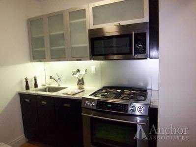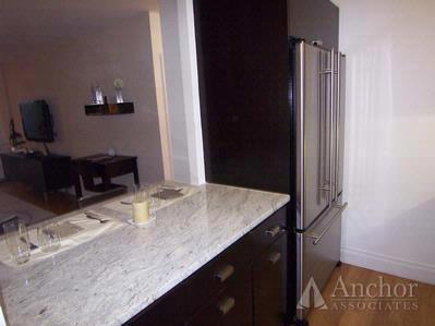 The Apartment:This pristine one bedroom apartment in a centrally located luxury condominium features a spacious balcony, new kitchen with top of the line, stainless steel appliances and breakfast bar and dark hardwood floors throughout.